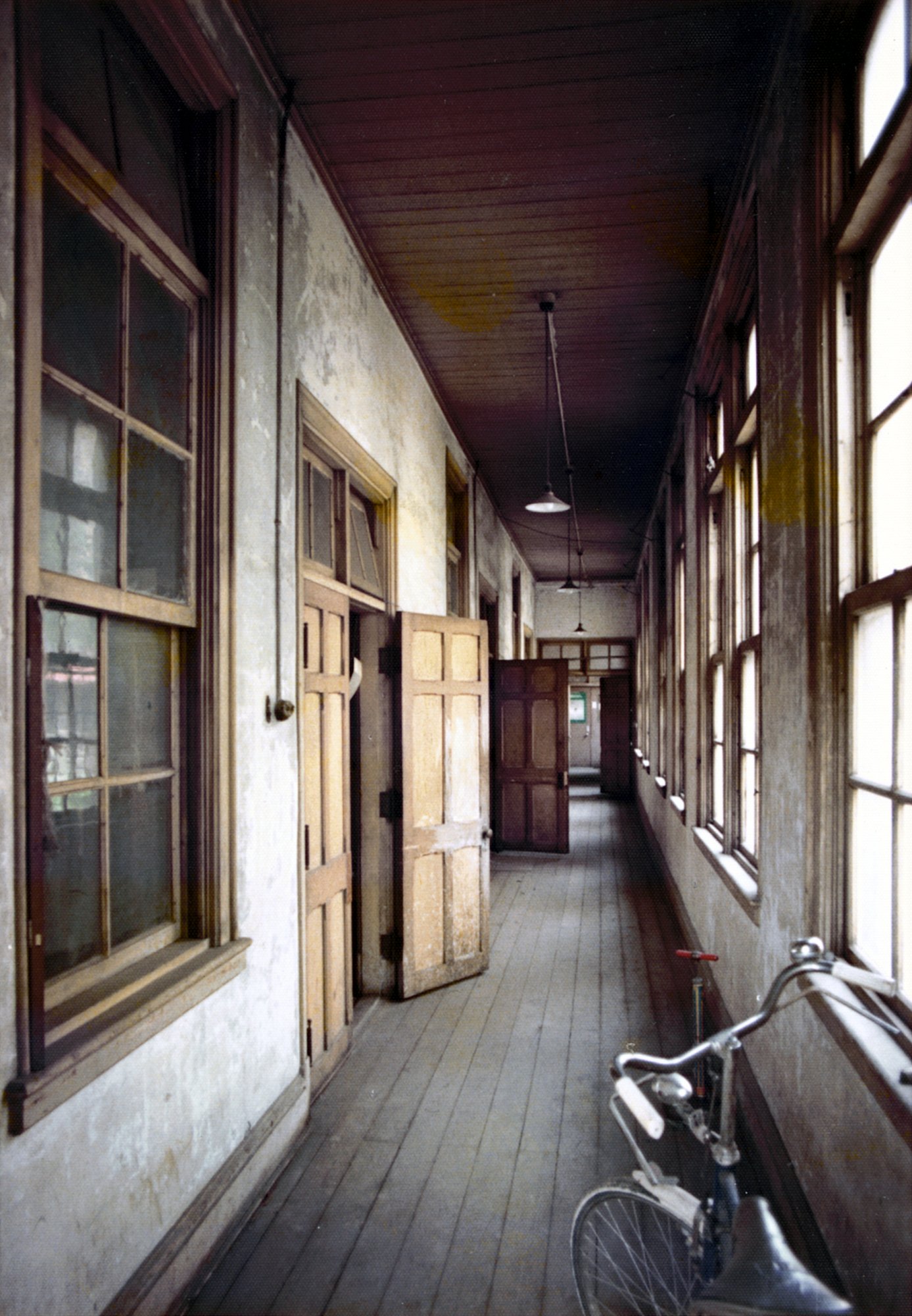 当時の第二閲覧室前廊下。右手にはトイレなどがありました。この廊下は平成の改修工事で取り壊されています。