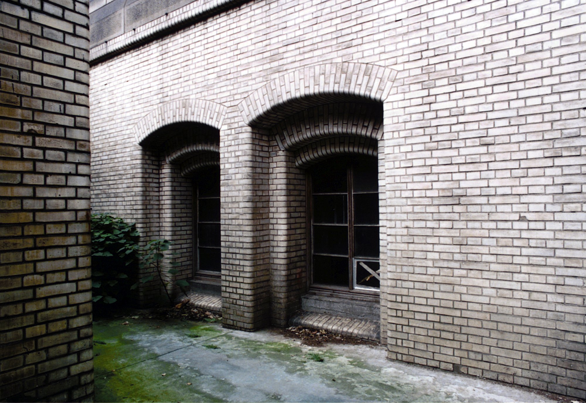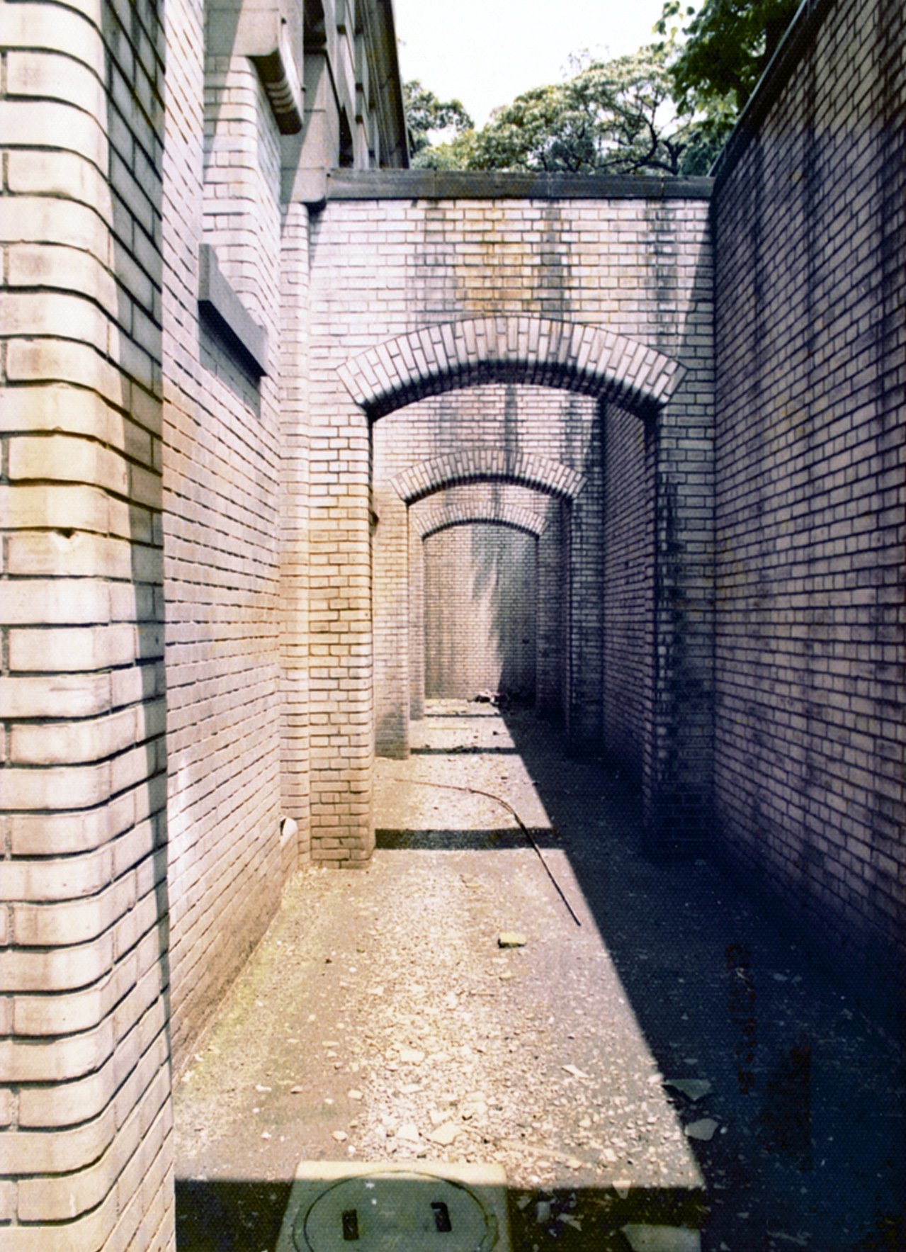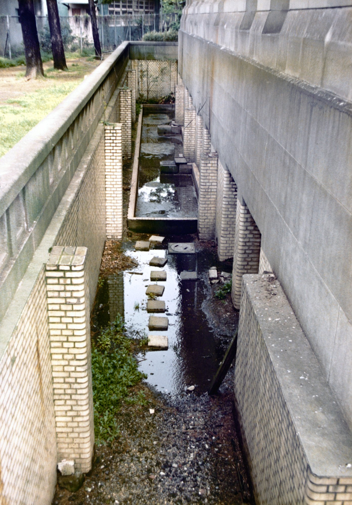 支部上野図書館時代の写真です。建物の西側以外に存在したドライエリア(空堀)です。これは北側です。