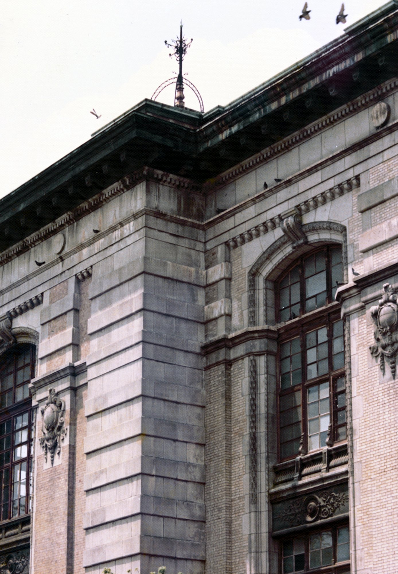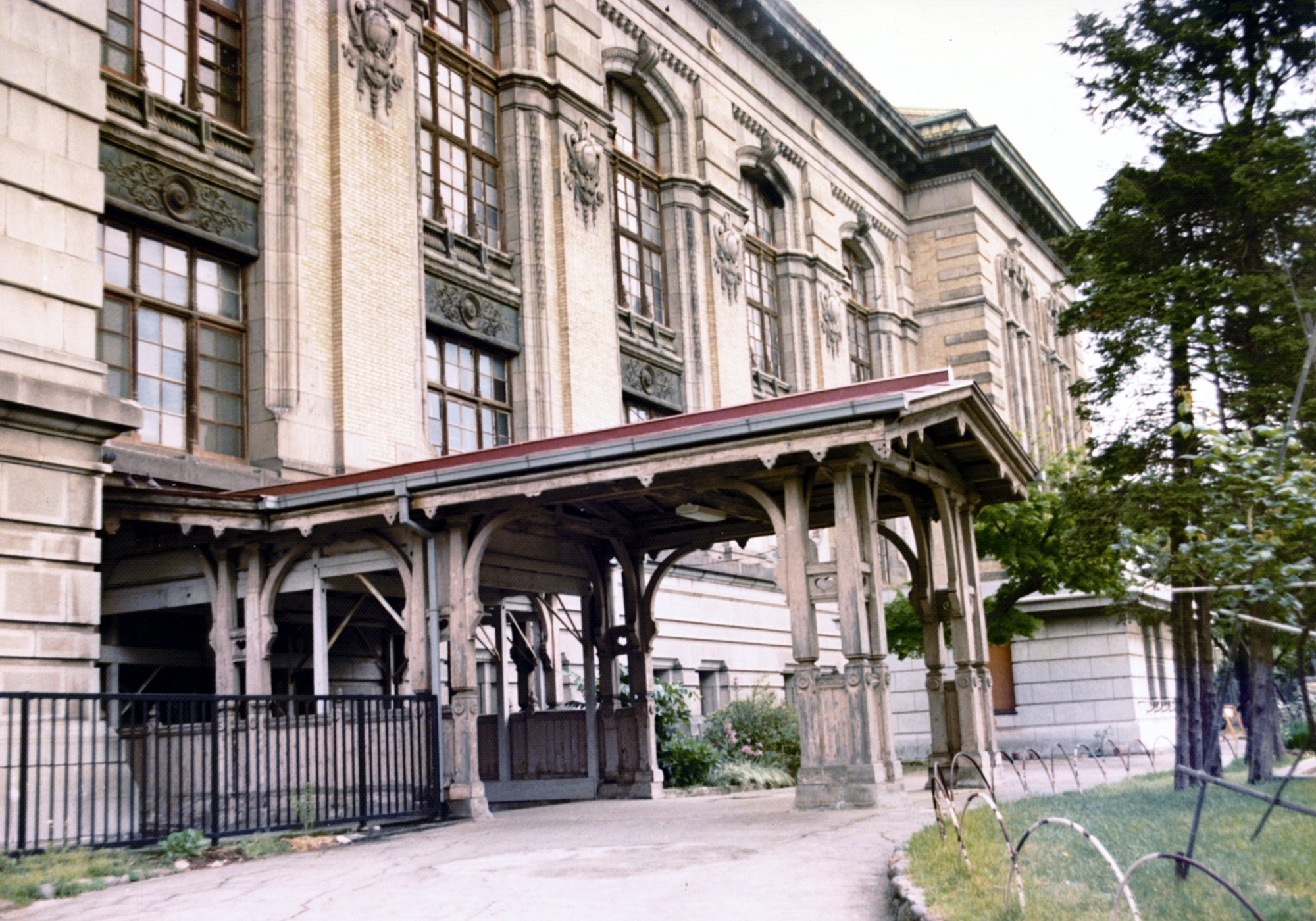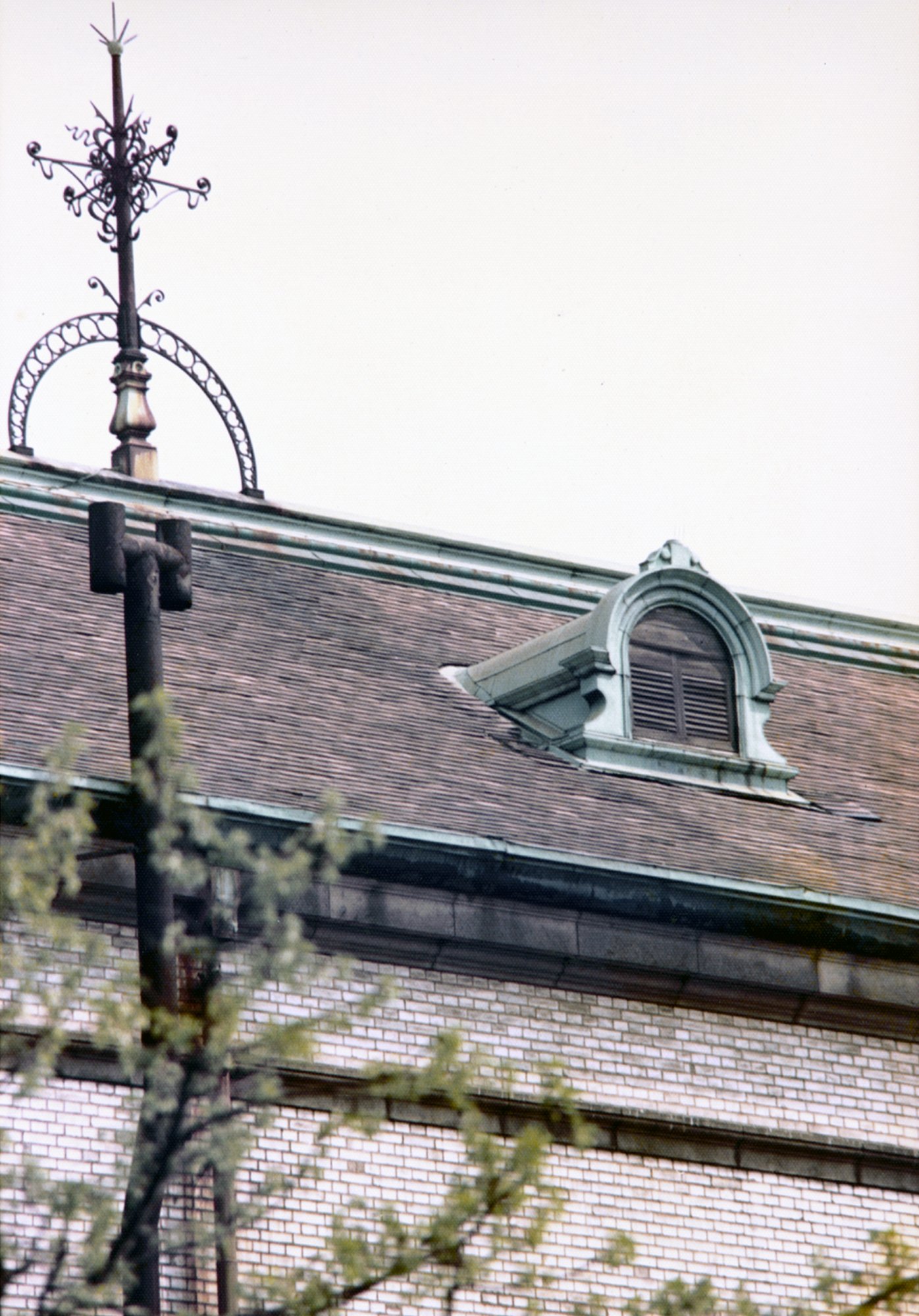 支部上野図書館時代の写真です。屋根はスレート葺きです。左側に見える飾りは避雷針です。