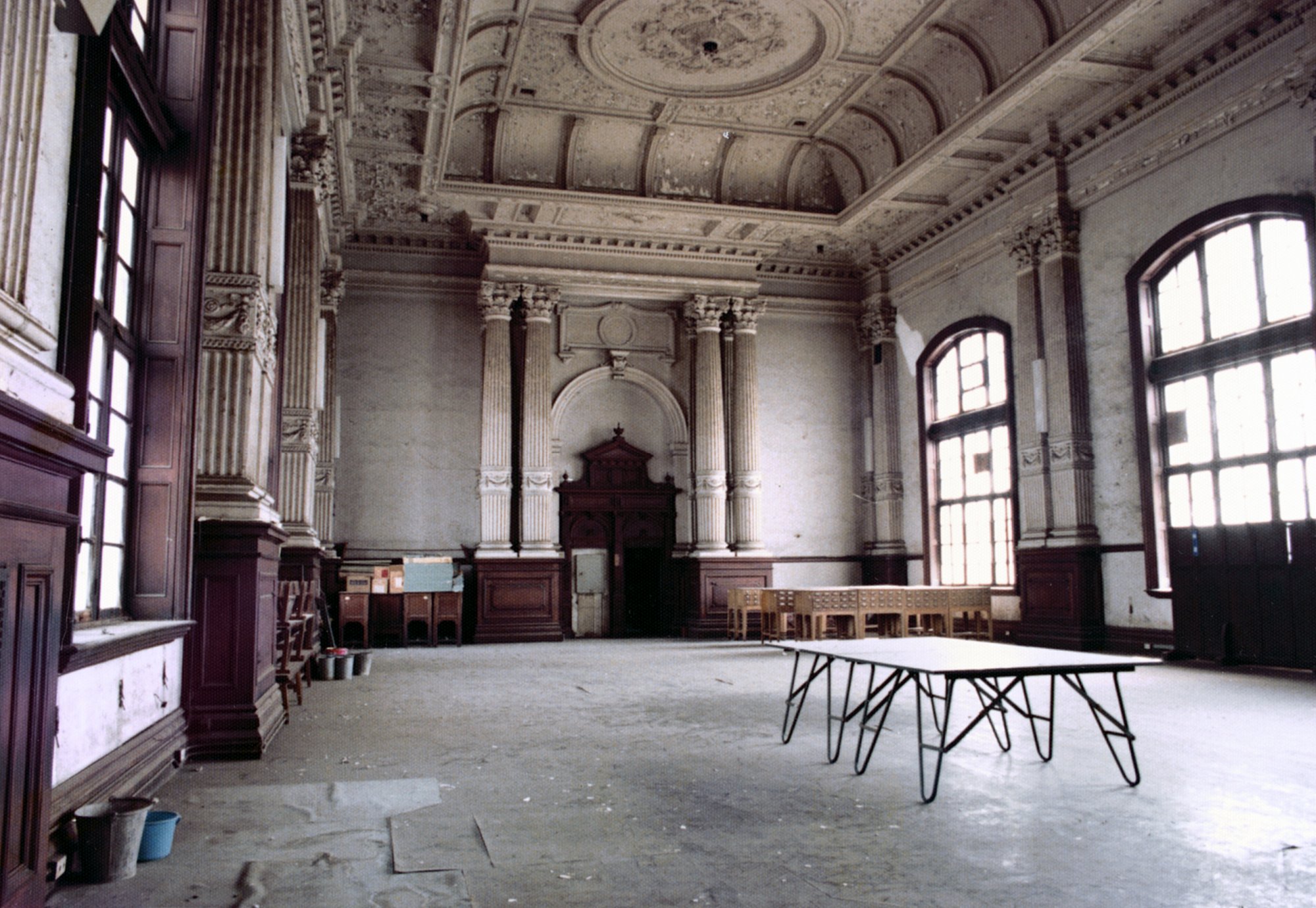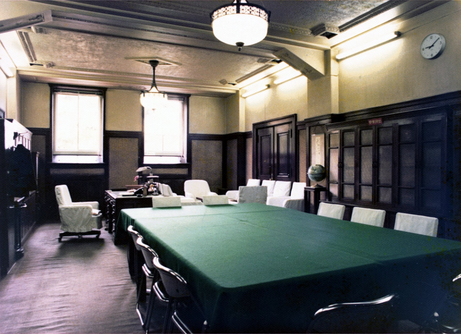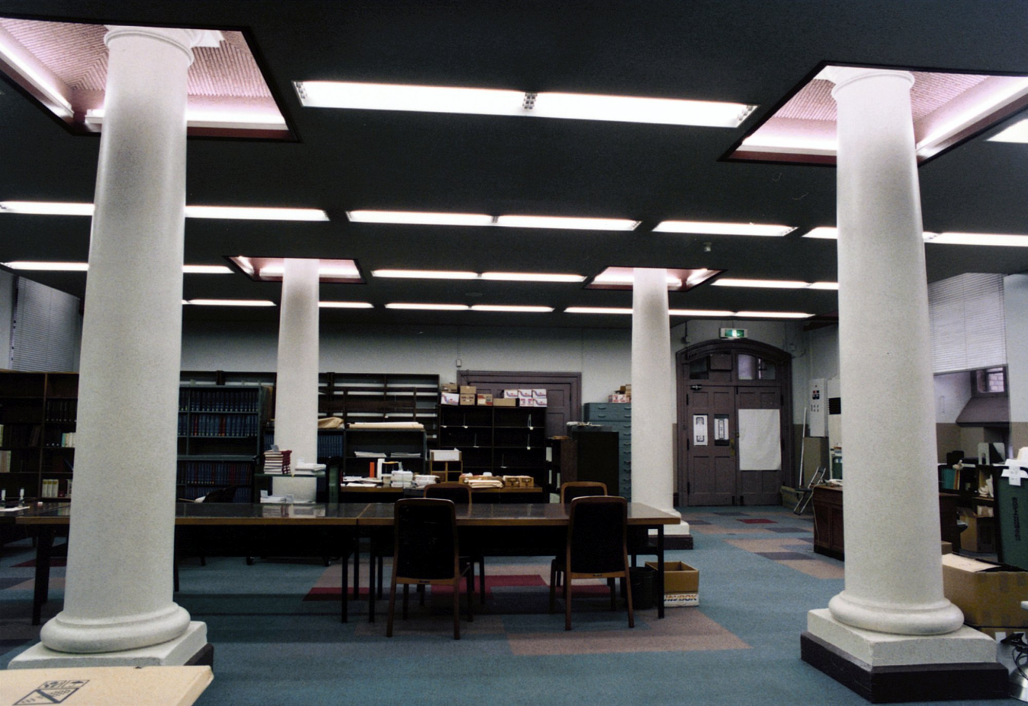 大階段2階部分から撮影した当時の第三閲覧室の画像です。現在ではこの部屋の中間に壁を設け見学者控室と展示準備室として利用しています。