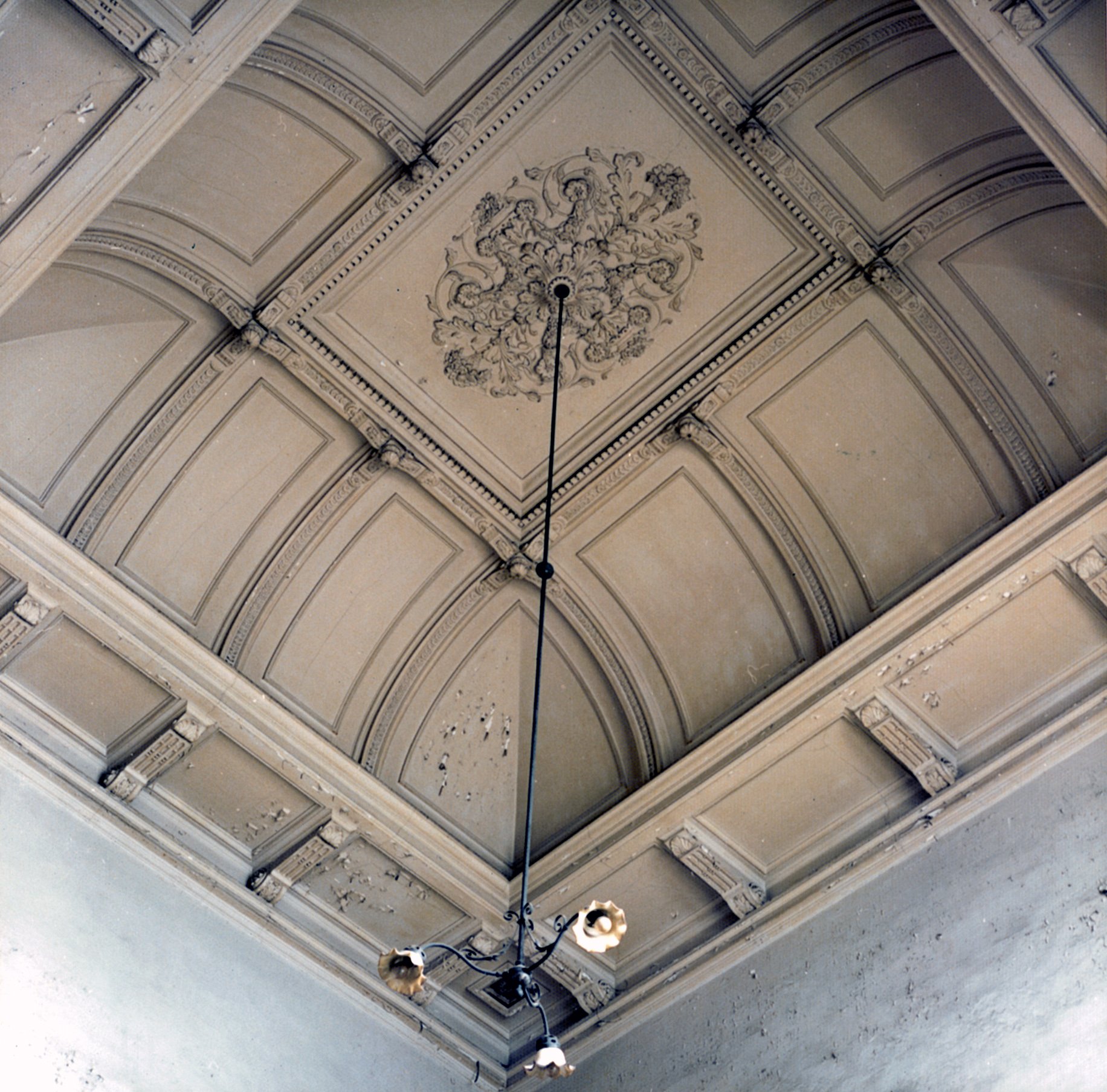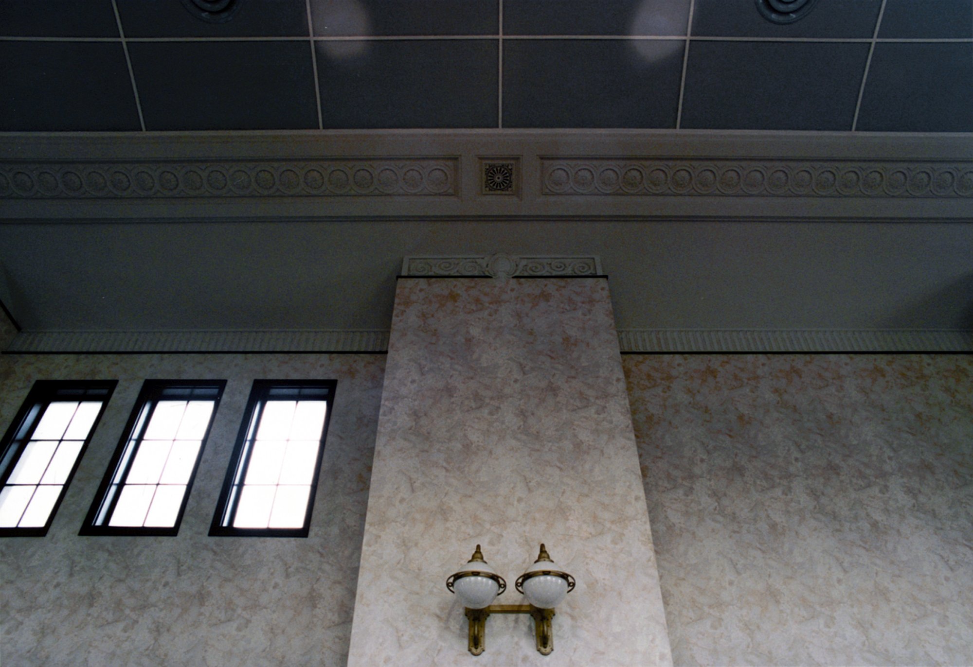 2階廊下部分の天井。一時期は蛍光灯が照明として使われていました。