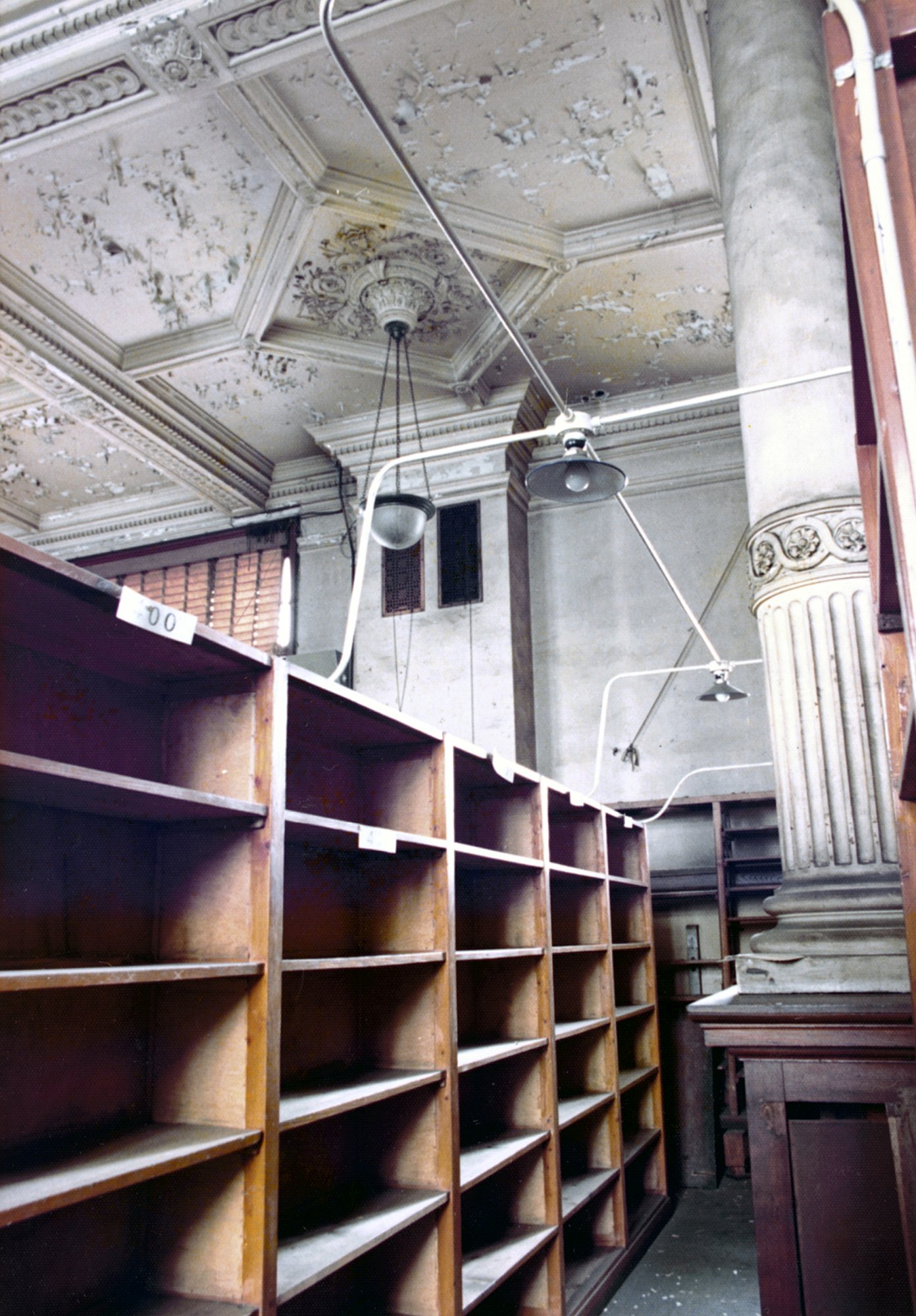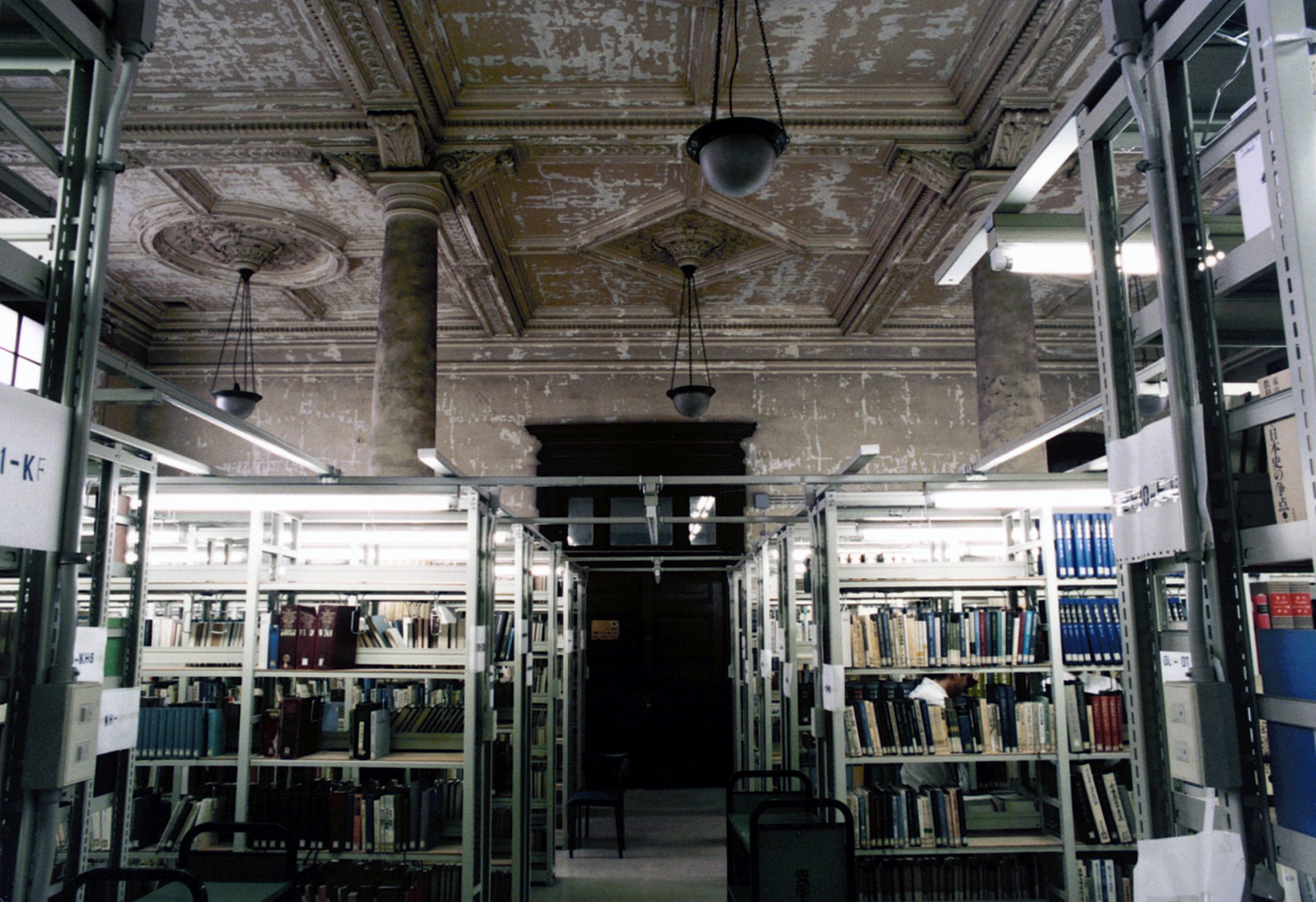 内部は内装の剥離などで危険な状態であったため、昭和の後期から閲覧スペースとしては利用されていませんでした。