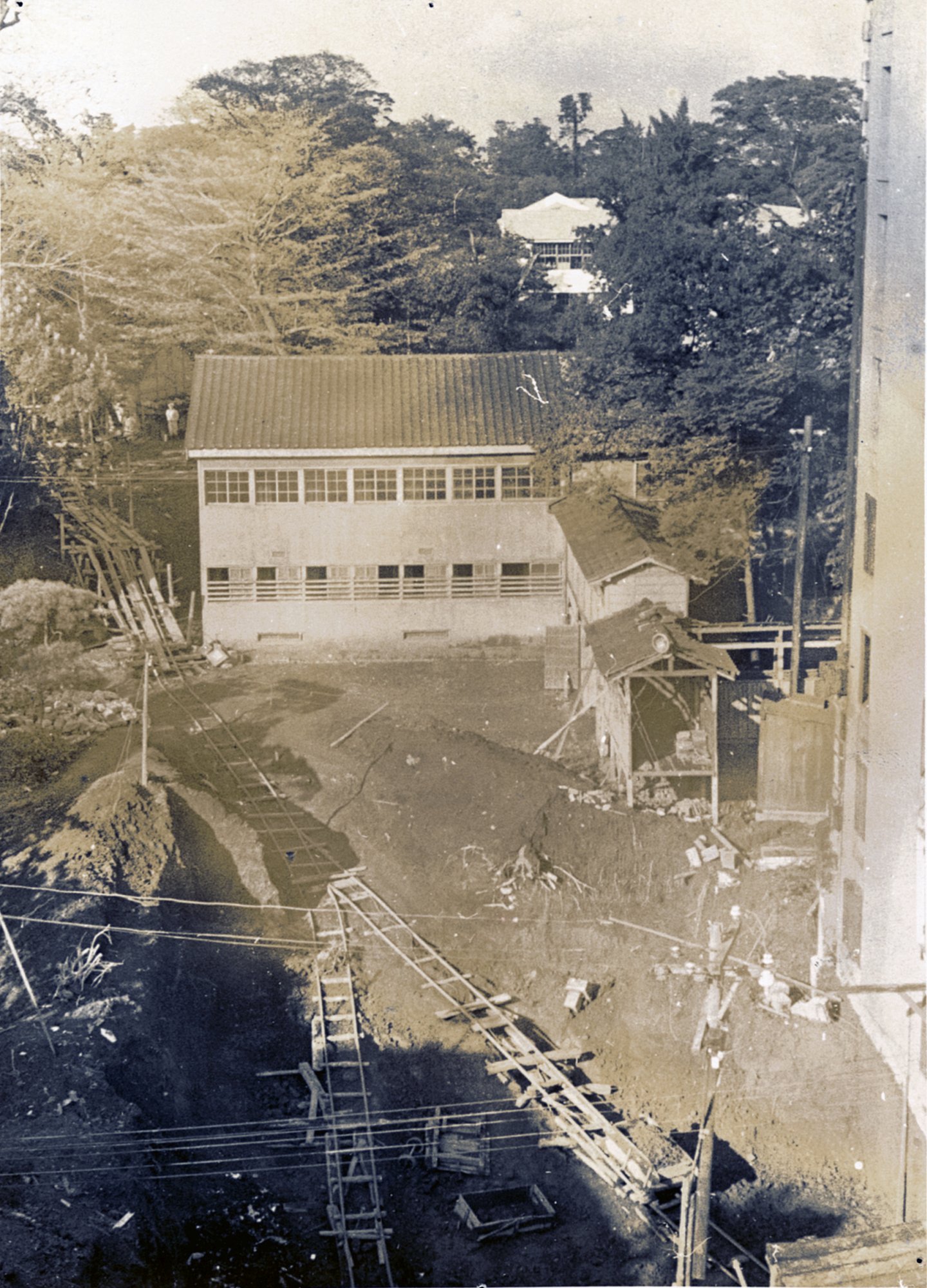 手前に見える建物は図書館職員養成所(後に移転。図書館情報大学,筑波大学図書館情報専門学群の前身)です。
