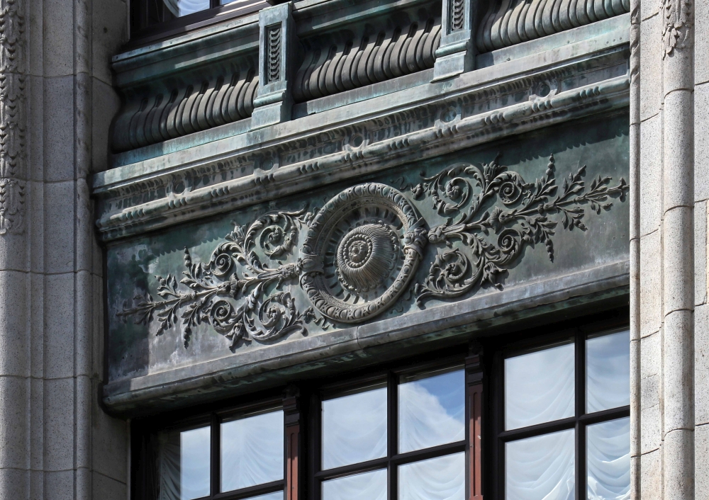 1.Decorative panels between upper and lower windows are made of cast-copper.