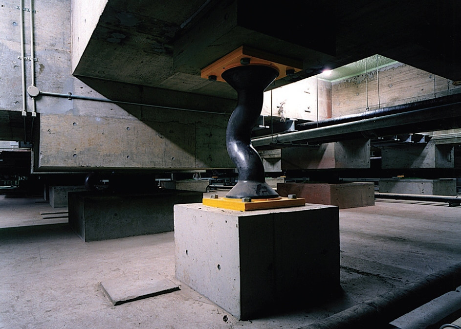 Seismic isolation, which isolates a building from the ground to minimize the direct effect of quakes to buildings, has been already applied to many cases in constructing new buildings. However it is still rare for this method to be adopted to retrofit existing buildings. One of the rare cases is the Main Building of the National Museum of Western Art, which is within walking distance of the ILCL. The museum was retrofitted by seismic isolation in 1996-1998. In the case of the museum the seismic isolator was set up beneath the foundation to make the whole building including the basement floors more quake-resistant. In the case of the ILCL, for the sake of safety, the seismic isolator (lead damper and laminated rubber isolator) was installed on the first basement floor to make only the aboveground floors seismically isolated. This is the first case in Japan to adopt seismic isolation in retrofitting a building with brick bearing walls.