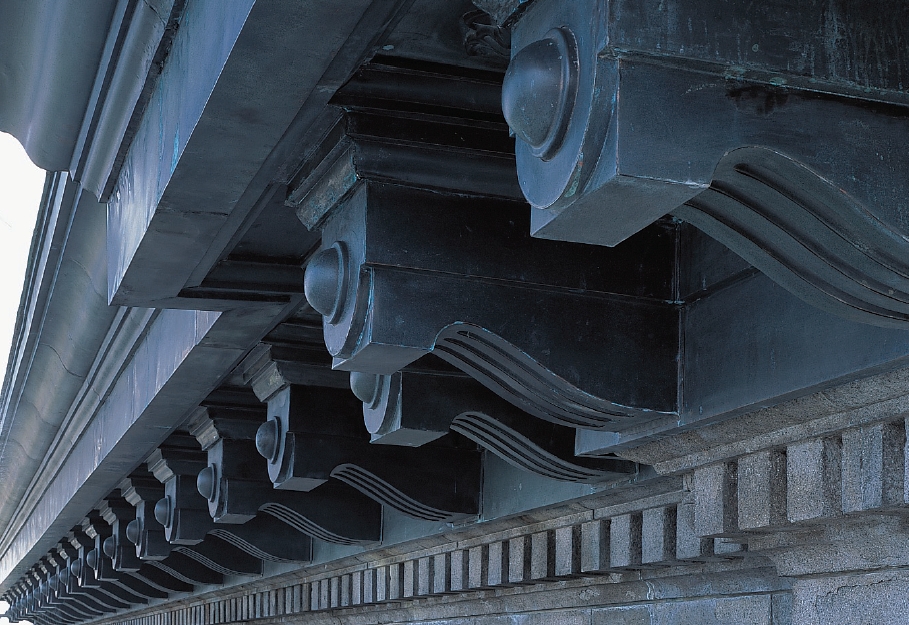 2.Decorations under the eaves are made from copper plates. They are formed in one piece with the eaves.
