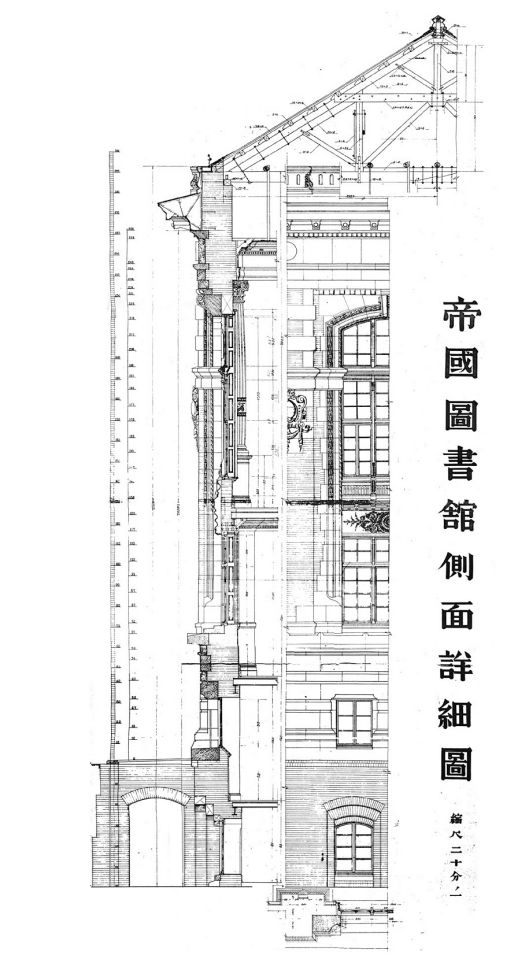 - 「帝国図書館側面詳細図」『帝国図書館増築工事設計図』
